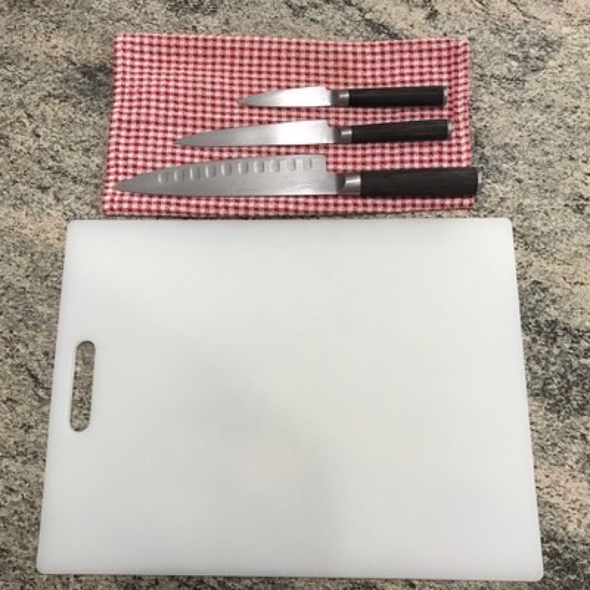 Ideally you should use your knifeonly ona designated cutting surface. Using a glass cutting board or other hard surface will only dull your knife morequickly or may damage the edge. The best cutting boards are those that provide a good cutting surface, are easily cleaned and don’t dull your knife after a small number of uses. Wooden and plastic cutting boards each have their own advantages and disadvantages. Most commercial kitchens (Chefs) use good quality plastic boards (yes, not all plastic baords are greated equal).
