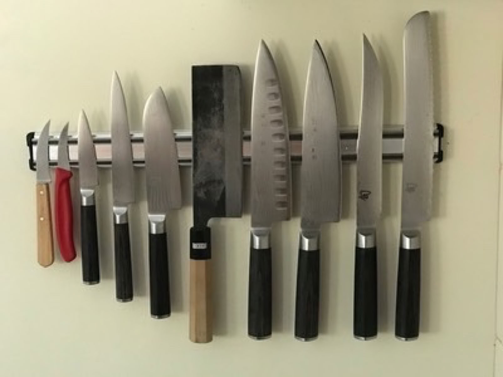 Please keep your knife away from children and always place in the middle of the bench, edge away from you, when you put the knife down. Do not drop them or throw them down onto the bench.
