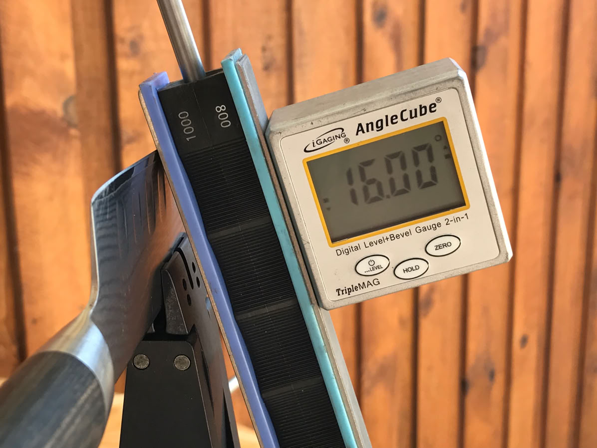 Angle set is determined - according to manufacturers recommendations and/or what the knife or tool is used for. To within +/-0.10 degrees (for knives).