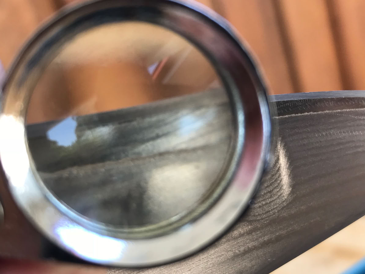 Same knife after edge restoration using 50, 80, 100, 200 grit diamond stones and then sharpening and polishing with 400, 600, 800, 1000, 1500 diamond stones.